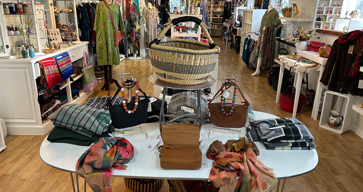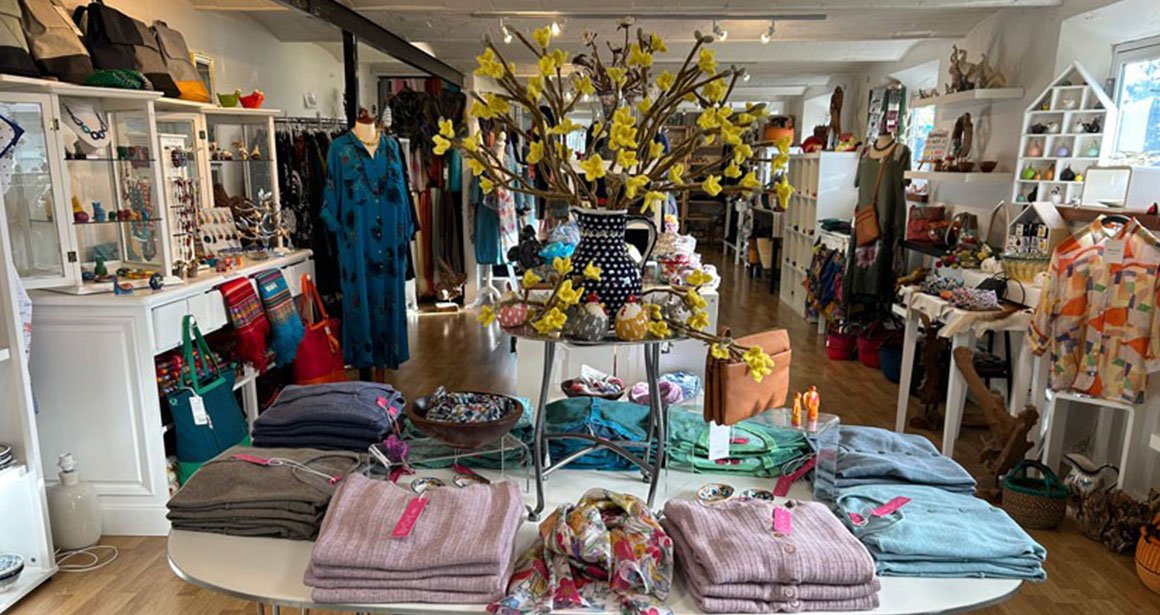 Fyldt med klassisk og farvestrålende brugskunst, tøj, tasker, tørklæder og smykker
